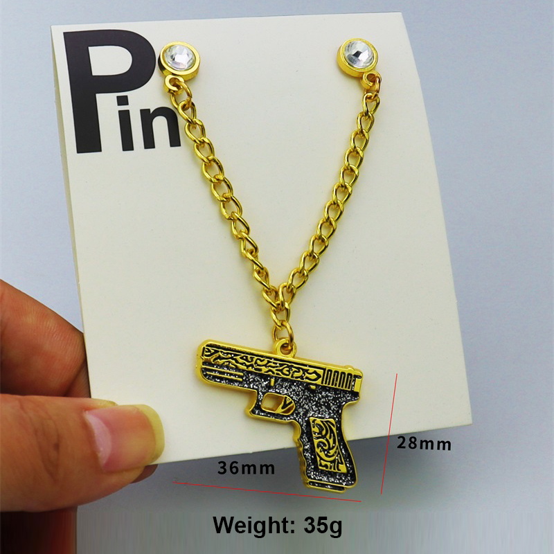 Pistol-Shaped Hat Pin With Chains