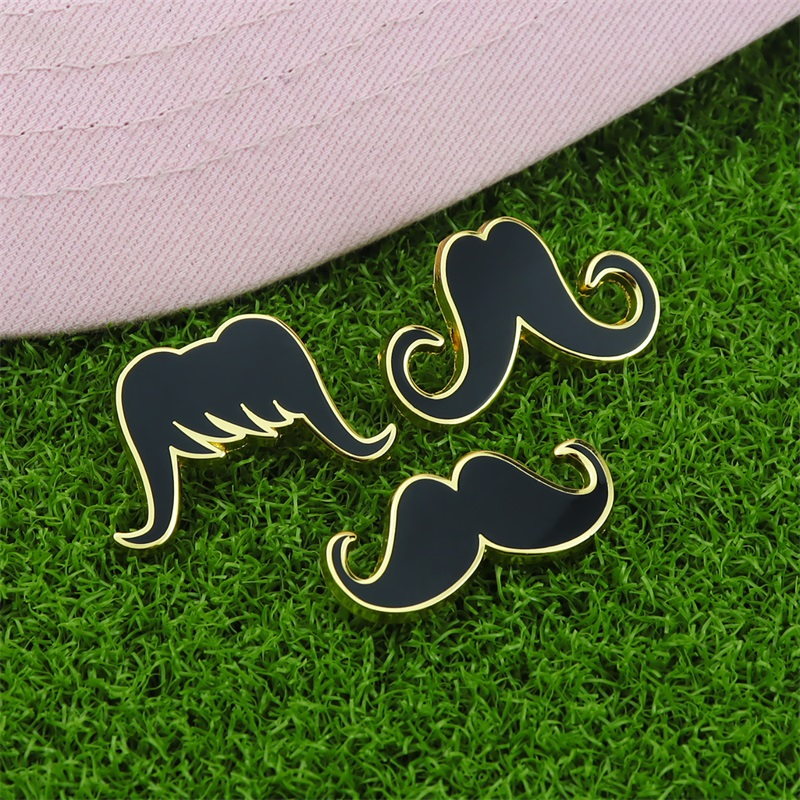 Stylish Cap/Bag DecorFeaturing diverse mustache shapes (black enamel + shiny gold borders), these pins bring playful, retro charm to caps/bags—perfect for whimsical, stylish accessory upgrades.