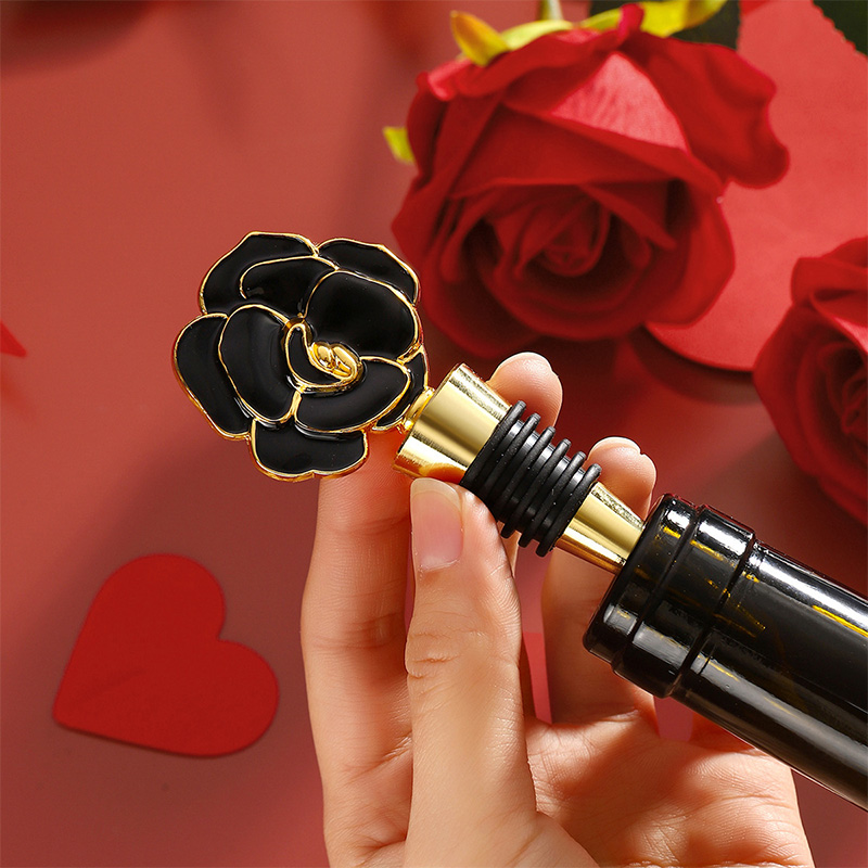 This 44g stopper is shaped like a vivid rose (in red/black/pink/white hues, trimmed with gold). Its silicone grip seals wine bottles tightly, doubling as an elegant decor piece—ideal for romantic occasions, gifting, or adding a floral touch to wine collections.