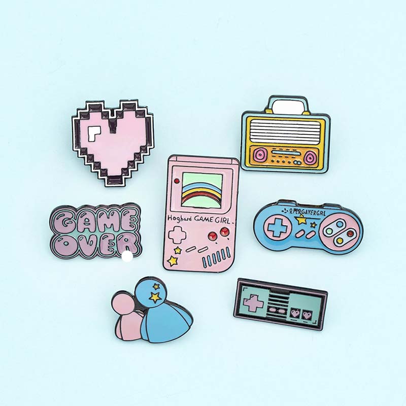 Features 6 playful retro designs (pixel heart, game girl console, controller)—vibrant, nostalgic vibes. Perfect for gamers to add quirky flair to bags/jackets, ideal for daily styling or retro game-themed accessory decor.
