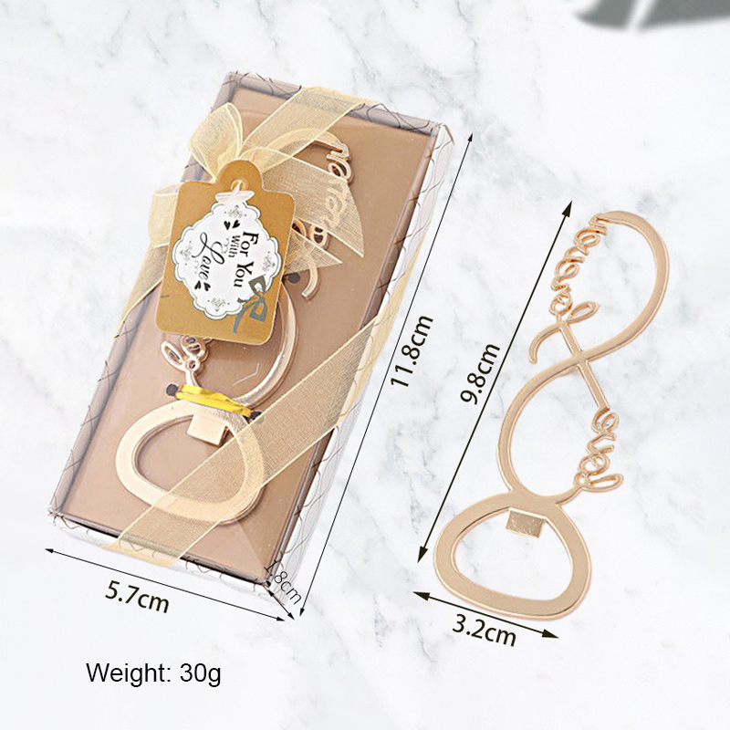 Crafted into a sleek rose gold infinity shape (engraved with "forever love"), this 30g opener smoothly pops bottle caps. Its romantic design blends decorative charm with practicality—ideal for weddings, anniversaries, or gifting to celebrate lasting connections.