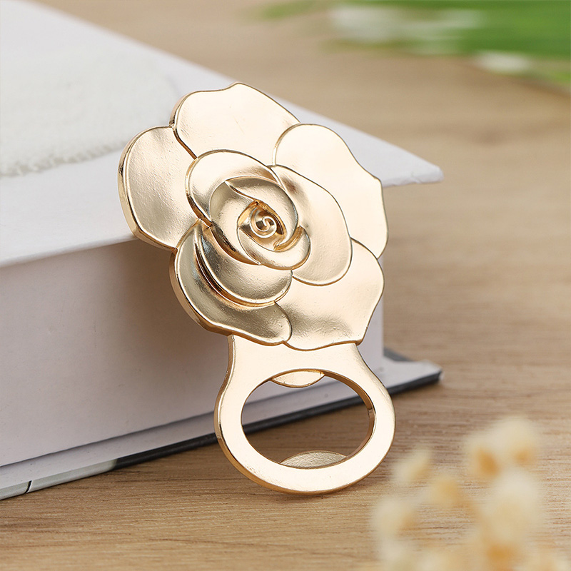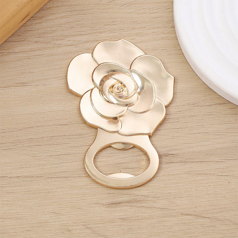 This 35g (7.5cm) gold opener features a detailed 3D rose design. It smoothly removes bottle caps, merging elegant floral charm with practicality—ideal for gifting, using as a wedding favor, or adding a romantic touch to barware.