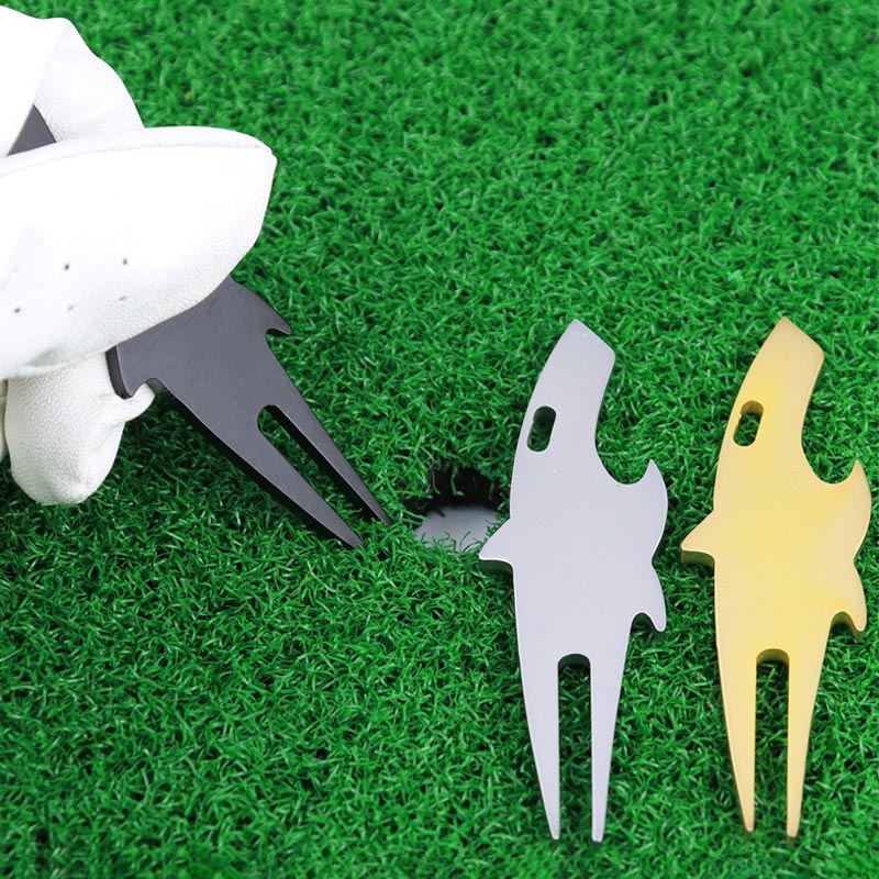 This 21g (80mm) shark-shaped tool (black/silver/gold) fixes green divots and doubles as a bottle opener. Its 3mm thickness ensures durability, and the keyhole design adds portability—unique, practical, and a fun addition to any golfer’s gear.