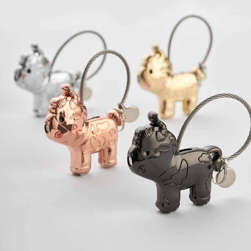 This keychain set features sheep-shaped pendants in rose gold, silver, gold, and black metal, with cable straps. With a cute, whimsical style, it’s ideal for couples to organize keys, perfect for adding a playful touch to bags, and suits gifting or daily use in romantic and animal-loving lifestyles.