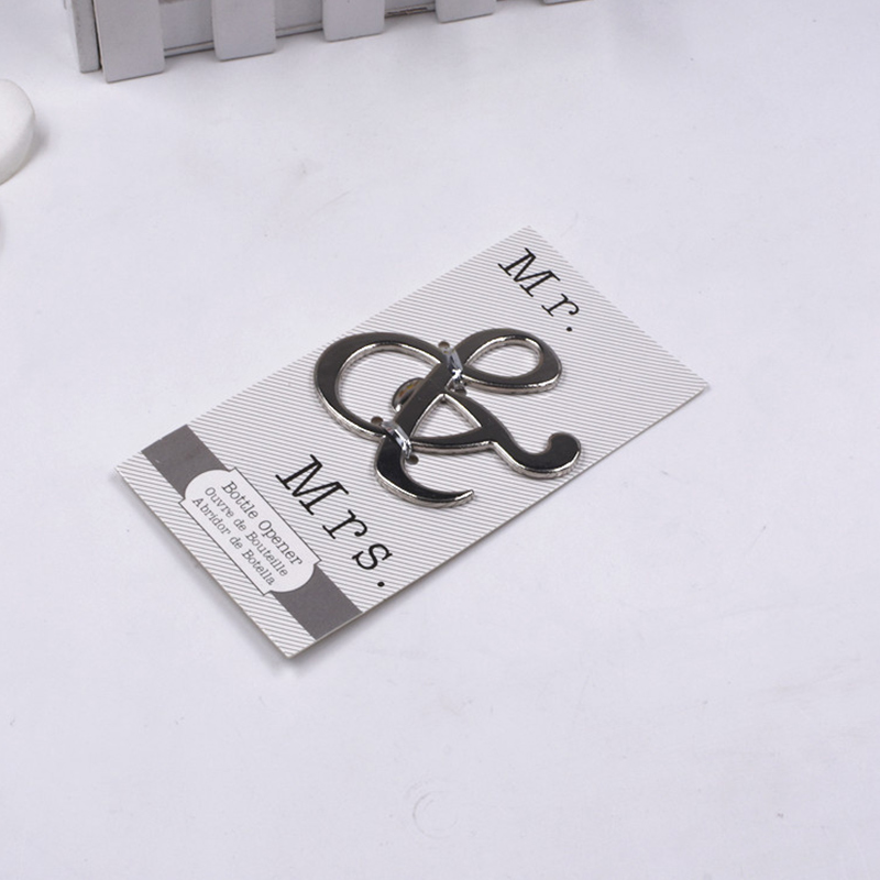 This 28g opener is shaped like a sleek silver ampersand (tied to "Mr. & Mrs." themes). It smoothly pops bottle caps, blending elegant wedding symbolism with practicality—ideal for bridal showers, weddings, or gifting to newlyweds.