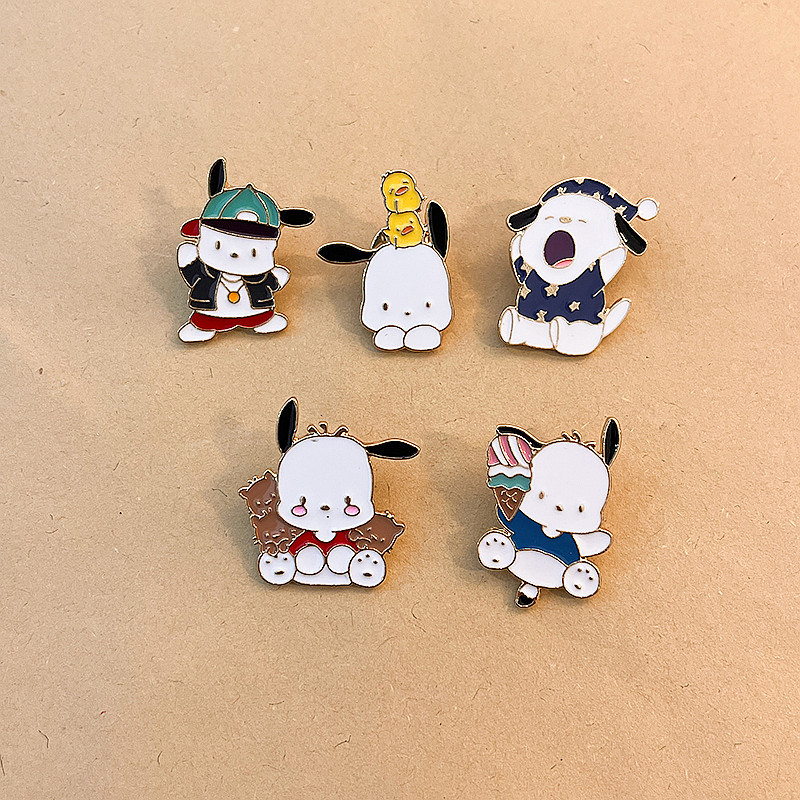 Product : Cinnamoroll Themed Enamel Pin Weight: 4g Color : Gold These vibrant enamel pins feature Cinnamoroll in playful looks—streetwear, duck companion, sleepy, snacking, ice cream. Cute, detailed designs blend Sanrio charm with whimsy, perfect for adding sweet flair to gear as beloved fandom collectibles.