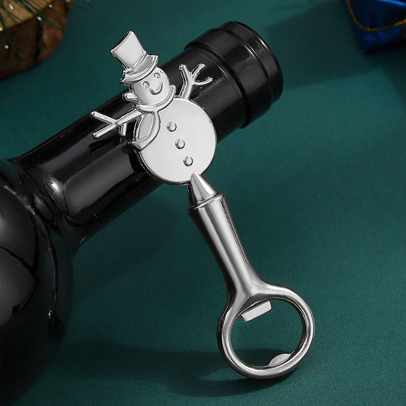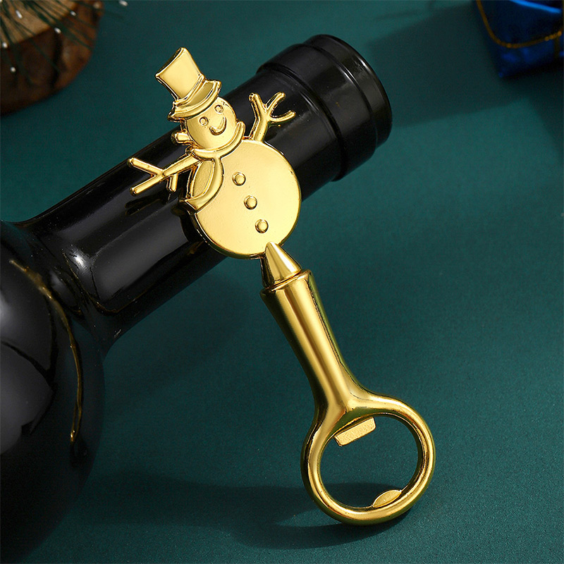 This 59g (10.6cm) opener is shaped like a festive snowman (gold/silver), doubling as a bottle stopper. It pops caps easily, making it a cheerful favor for Christmas parties, holiday gatherings, packaged with "Merry Christmas" branding.