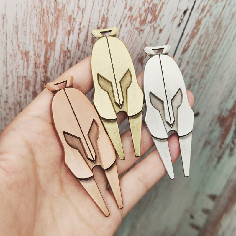 This 27g (76mm×28.5mm) divot tool features a bold Spartan helmet design (4mm thickness). Sleek, durable, and functional for green repairs, it blends warrior-inspired style with on-course practicality—ideal for golfers craving distinctive, themed gear.