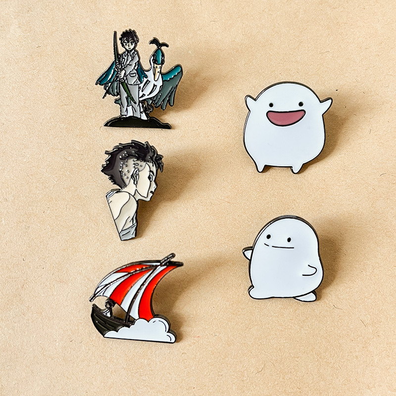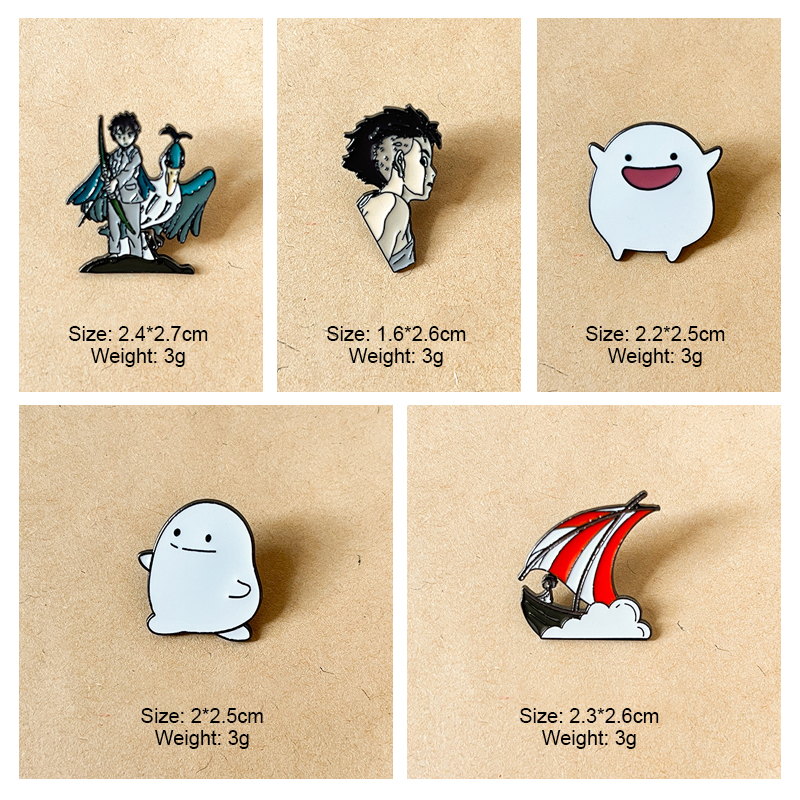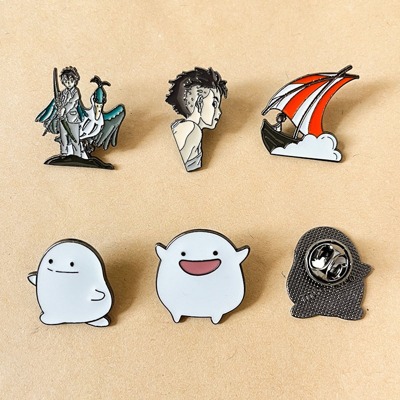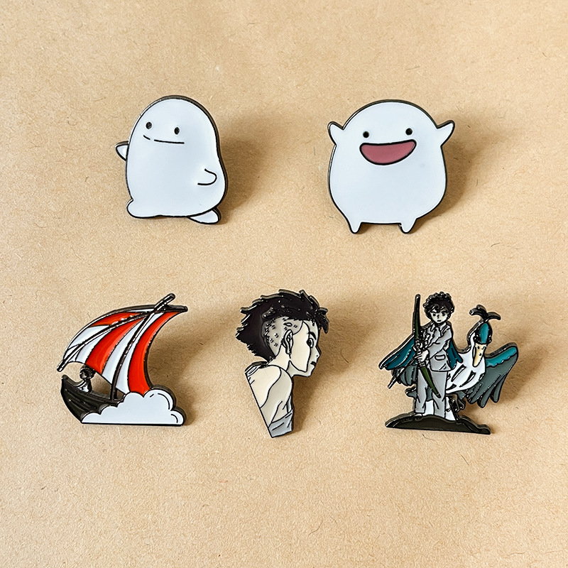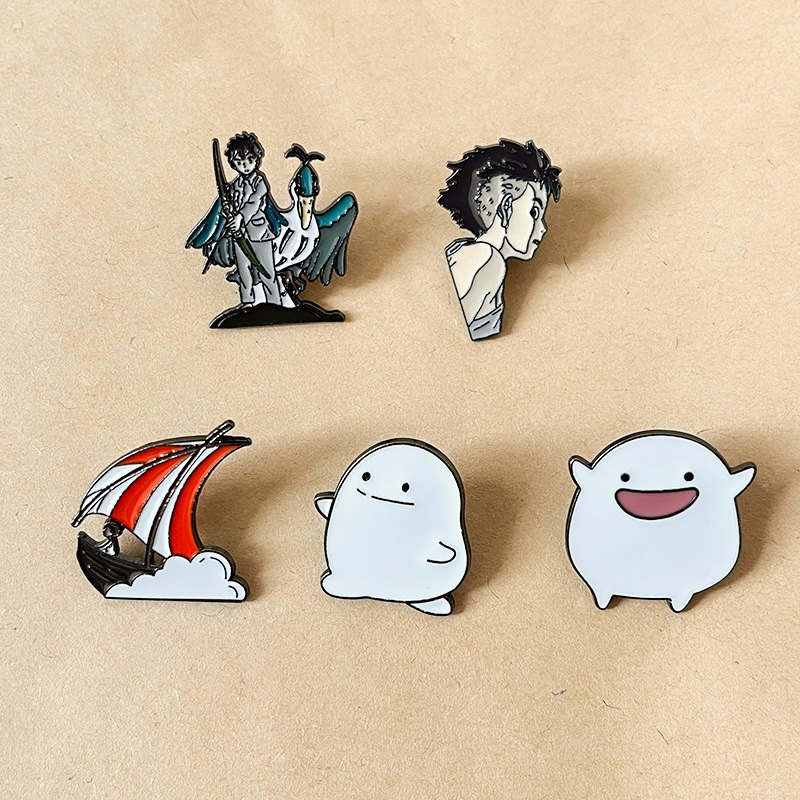 5 cute Ghibli pins (soot sprite, Mahito, etc.) — vivid enamel, true-to-film details. Perfect for Ghibli fans to add whimsical flair to bags/jackets; ideal for daily wear or Studio Ghibli collectible decor.