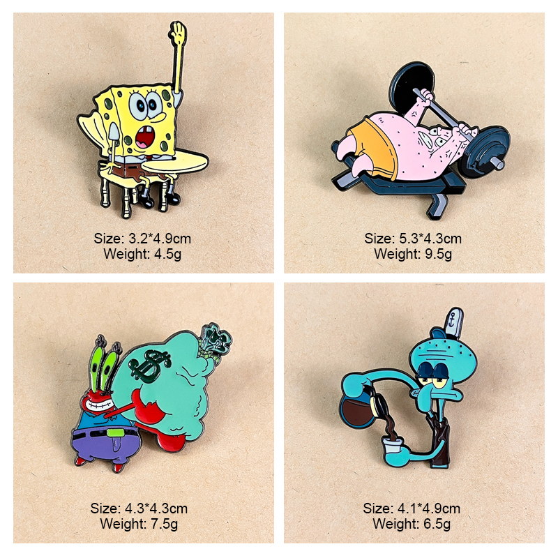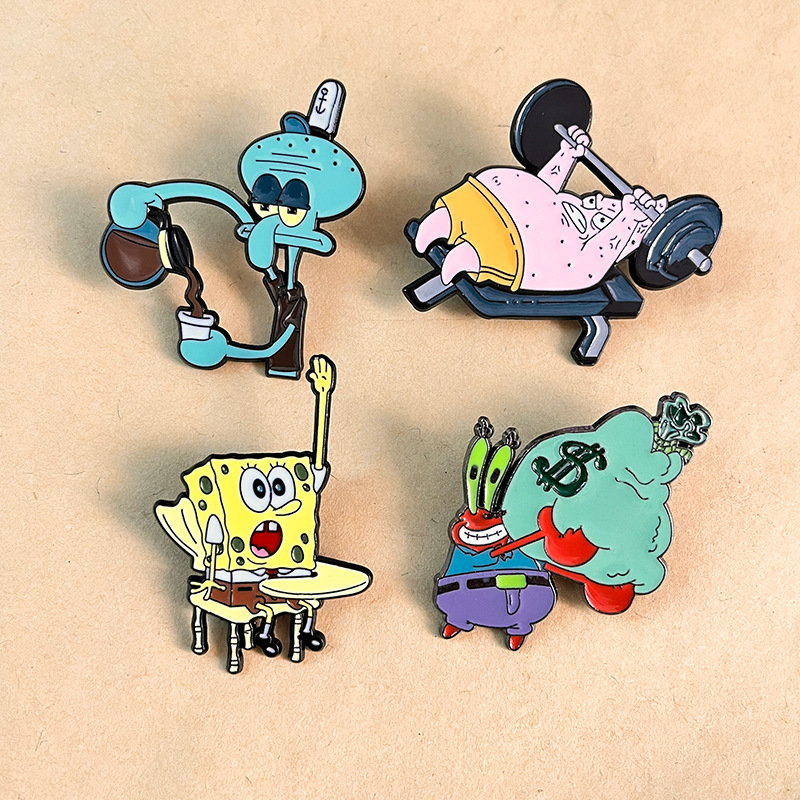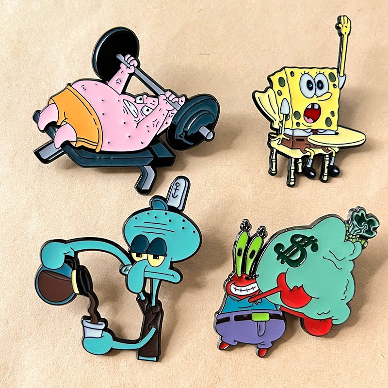 These SpongeBob pins have scene-shaped designs (Mr. Krabs’ cash pile, Patrick’s weight bench) with bold, glossy detailing. They adorn backpacks, jackets, or hats—perfect for cartoon lovers to showcase nostalgic, humorous flair in daily outfits or fan gatherings.