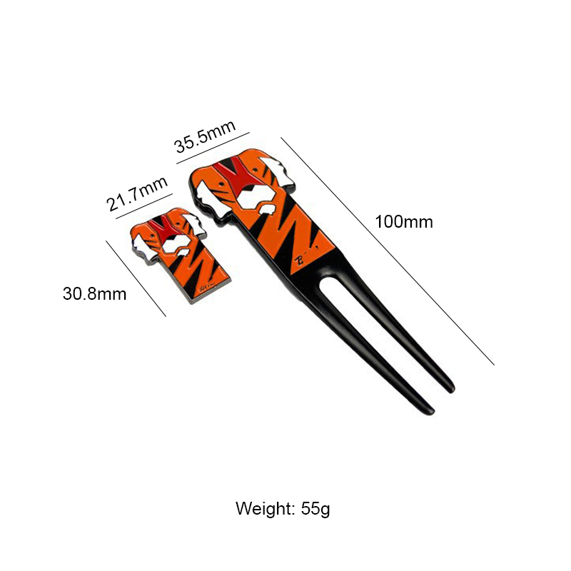 This 55g (100mm) set features a vibrant tiger design (divot tool + marker), blending bold style with durability. Functional for green repairs, eye-catching, and perfect for golfers who want gear that stands out with fierce, playful personality.