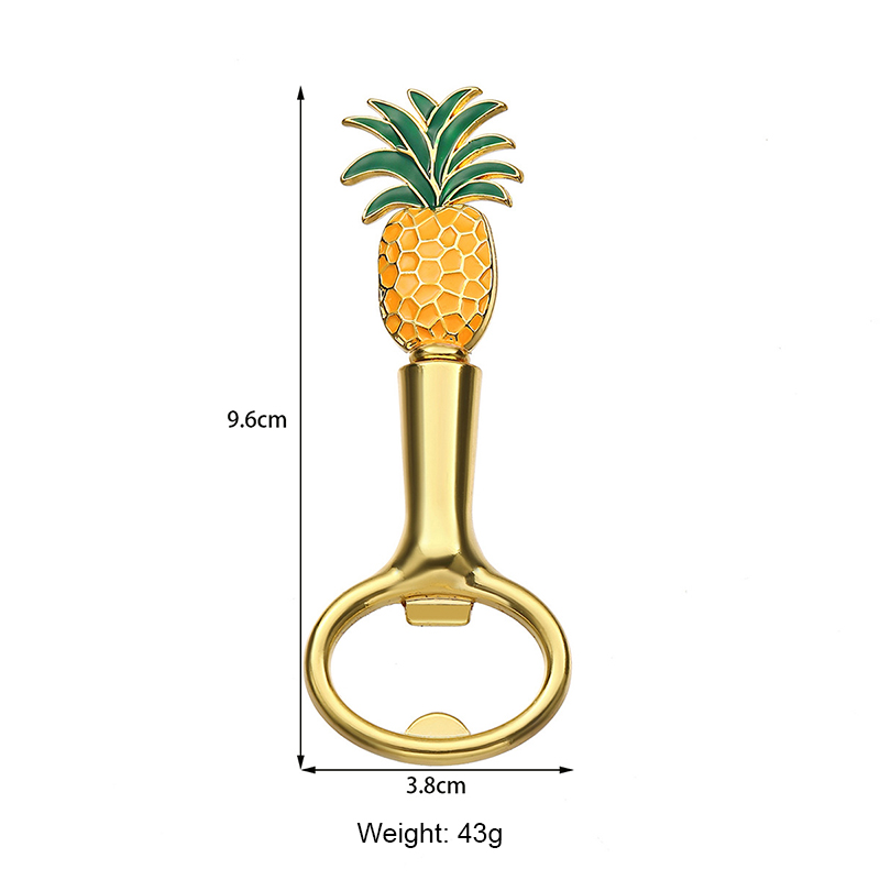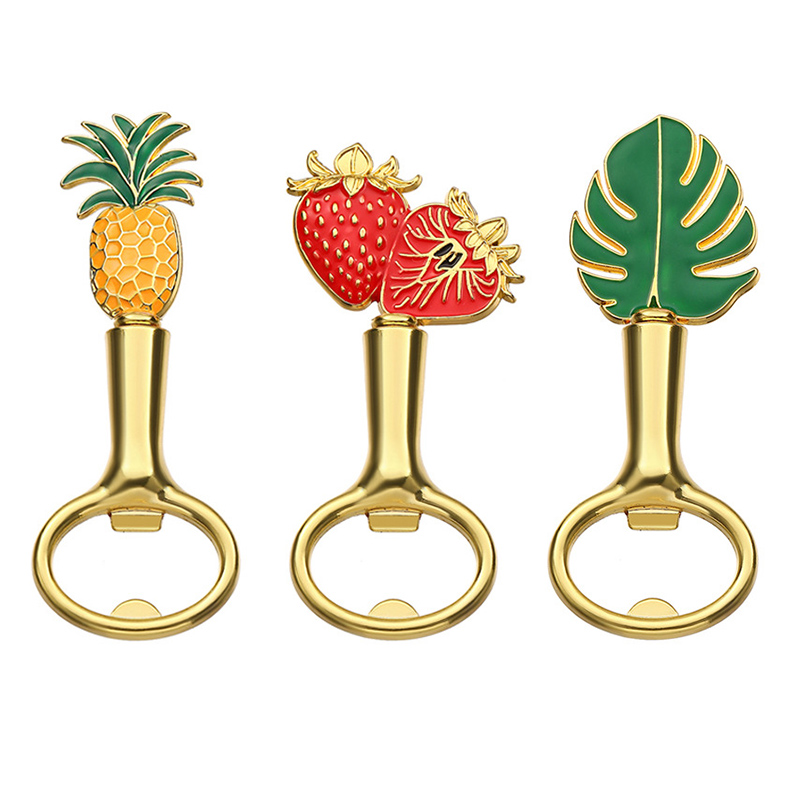 This 43-48g (8.7-9.6cm) gold opener comes in pineapple/strawberry/monstera leaf designs with vibrant enamel. It pops caps easily, making it a lively favor for summer parties, beach gatherings, or tropical-themed events.
