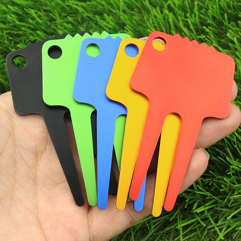 This 14g (80.2mm) tool boasts a distinctive zig-zag-top shape, available in bold hues (black/green/blue/yellow/red). It fixes green divots effortlessly, has a keyhole for portability, and supports custom logos—practical, eye-catching, and personalized for golfers.